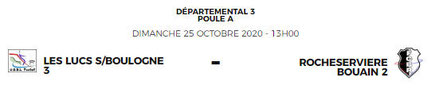 18. octobre 2020 Les Matchs du Week-End Où sont nos Arbitres ? Annabelle LARDIERE: Romain CAVOLEAU: Dimitri POTIER: Michaël GUILLOT: Genetouze Fc 1 - Us Bernardiere Cugan 1 en D1 (Dimanche 25/10) Nino BOUCARD: Yanis PIVETEAU: Vendredi Samedi U6/U7 - Plateau à l'Herbergement / 10h30 U8/U9 - Plateau à Bouaine / 10h30 U10/U11 FCBR 1 - Plateau à Boufféré / 14h30 U10/U11 FCBR 2 - Plateau à Bouaine / 14h30 U10/U11 FCBR 3 et 4 - Plateau à Belleville sur Vie / 14h30 Dimanche tagPlaceholderCatégories : Écrire commentaire Commentaires: 0